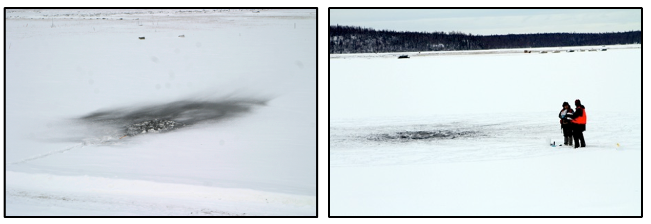Figure 2. Post-detonation residues deposition footprint and sampling residues on snow-covered ice